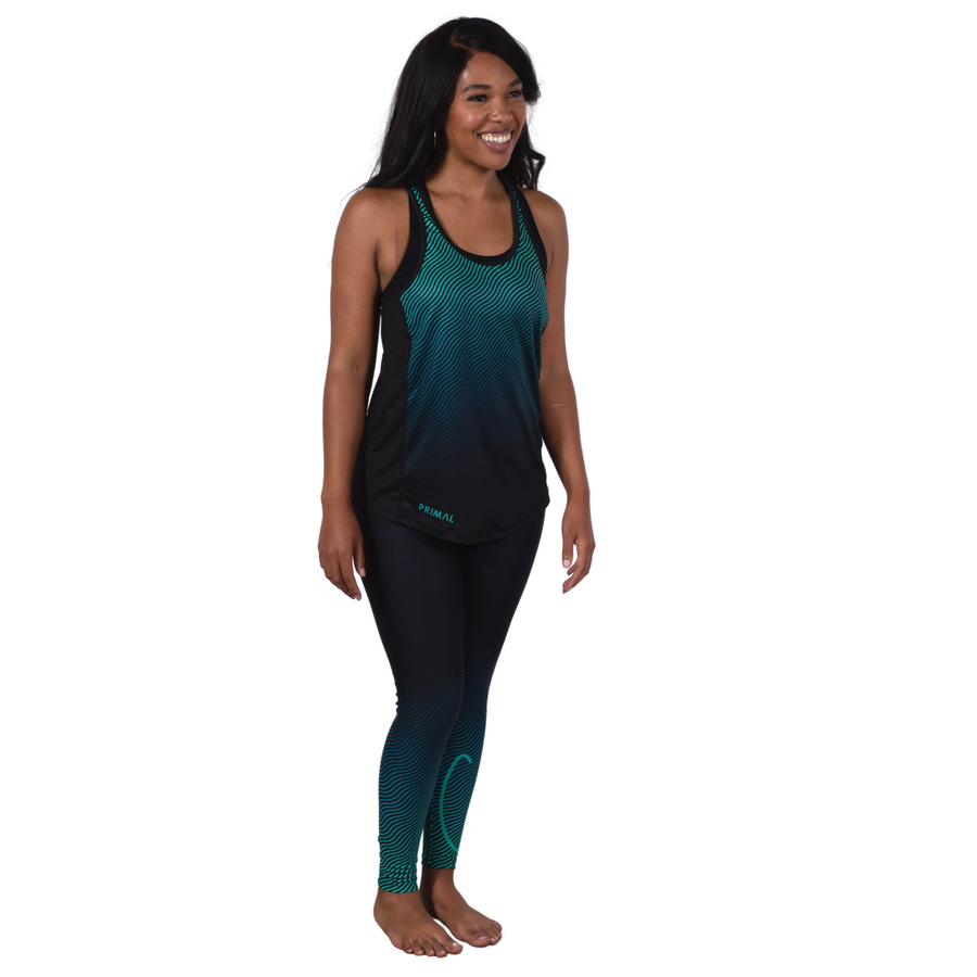 Teal Ripple Full Length Spin Tights