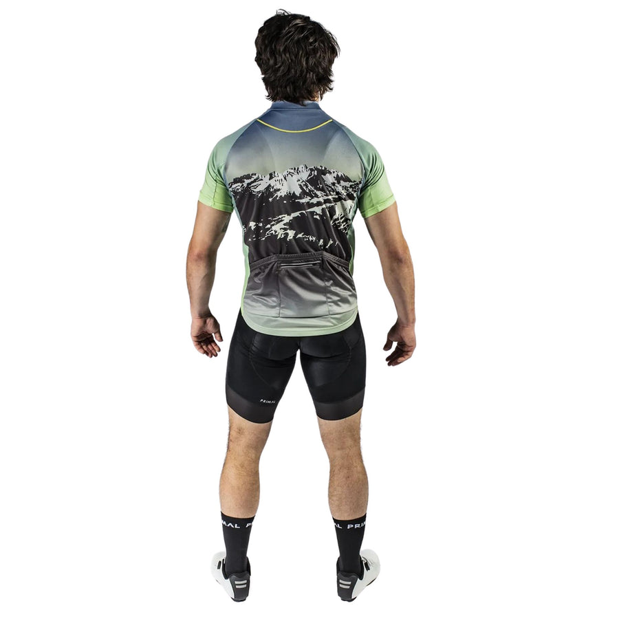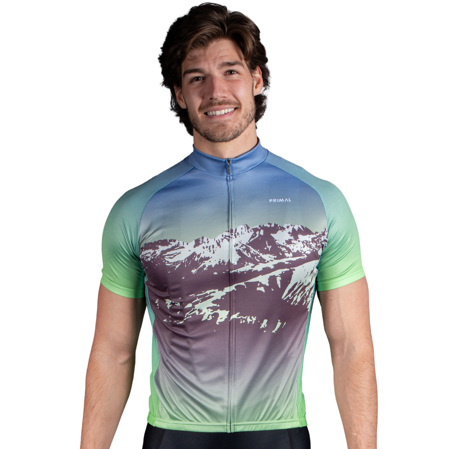 Elevate your cycling experience with a jersey featuring a captivating design that mirrors the grandeur of a stunning mountain landscape. Crafted to make heads turn, this jersey not only boasts visual appeal but also guarantees top-tier comfort and performance, ensuring you ride with breathtaking style.
