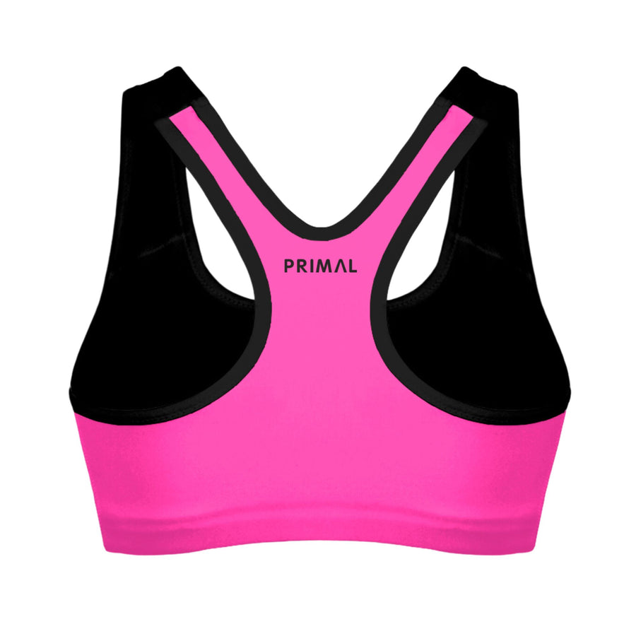 The Primal Sports Bra combines comfort and functionality to become the ultimate addition to even the toughest workouts. The elastic trim allows for the optimal amount of stretch, and the racerback design makes it as stylish as it is sporty. Moisture wicking fabric allows you to “get your sweat on” while keeping you comfortably dry.